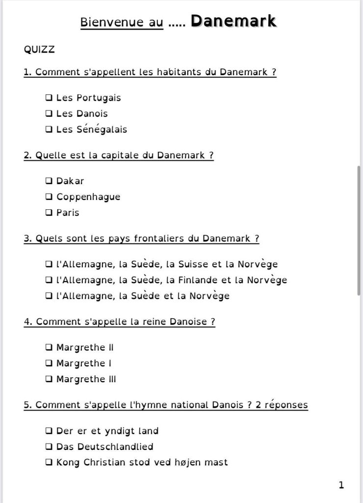 Pour le projet Tour d’Europe de ma classe, nous continuons par le Danemark.