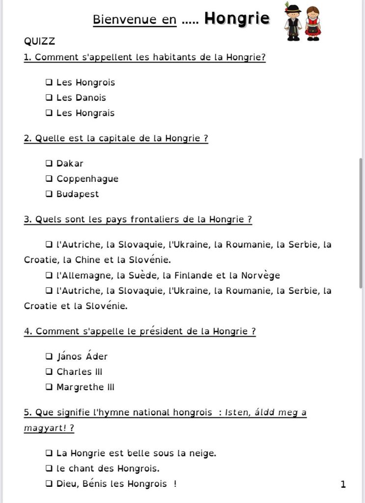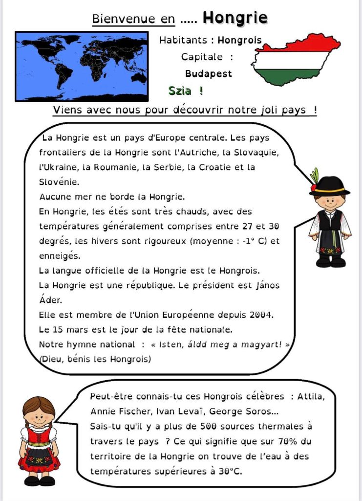 Pour le projet Tour d’Europe de ma classe, nous continuons par la Hongrie.