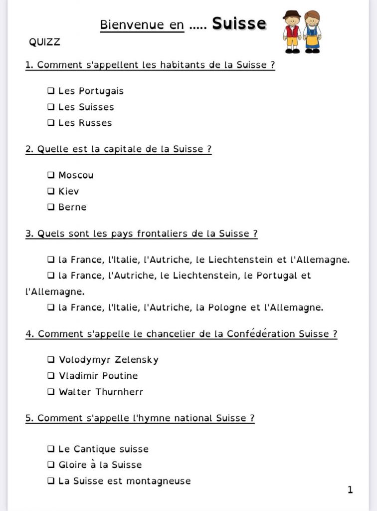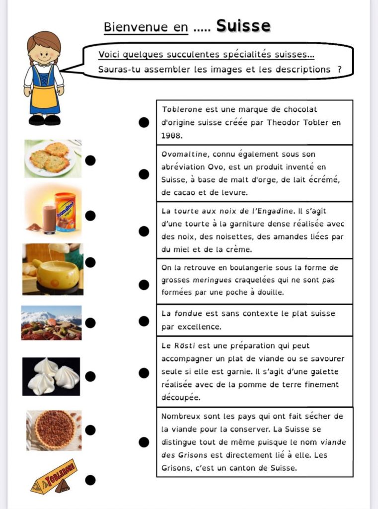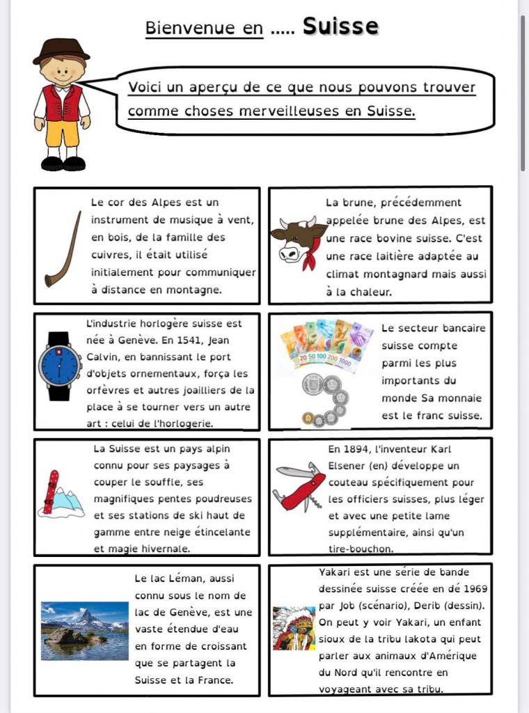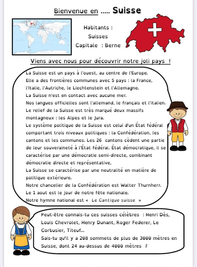 Pour le projet Tour du monde de ma classe, nous continuons par la Suisse.