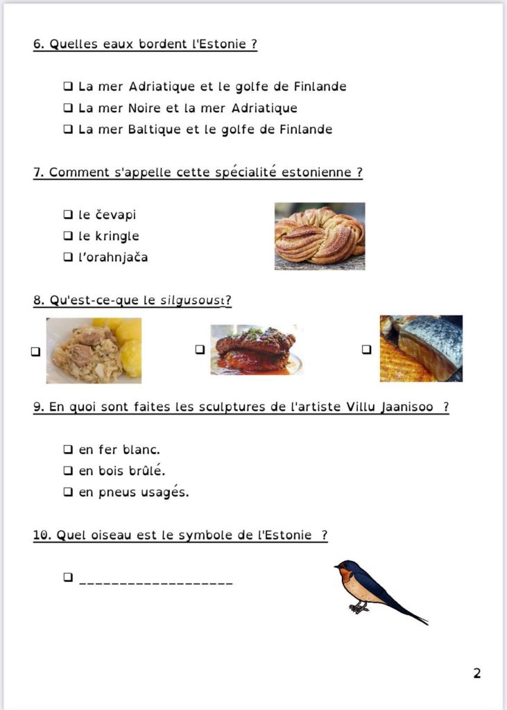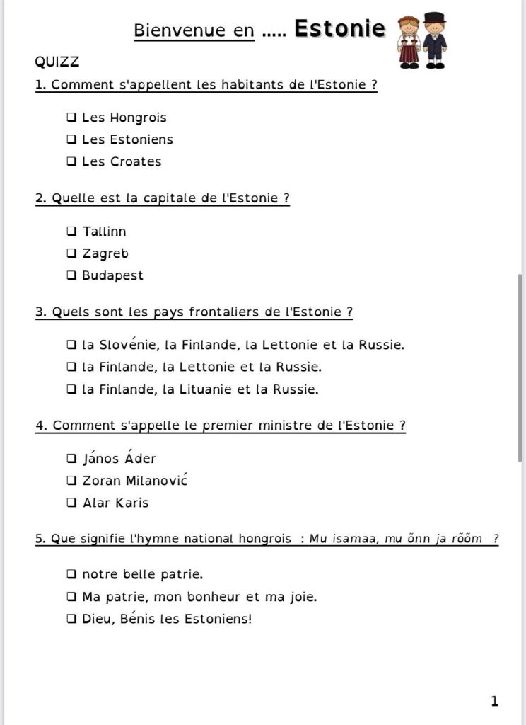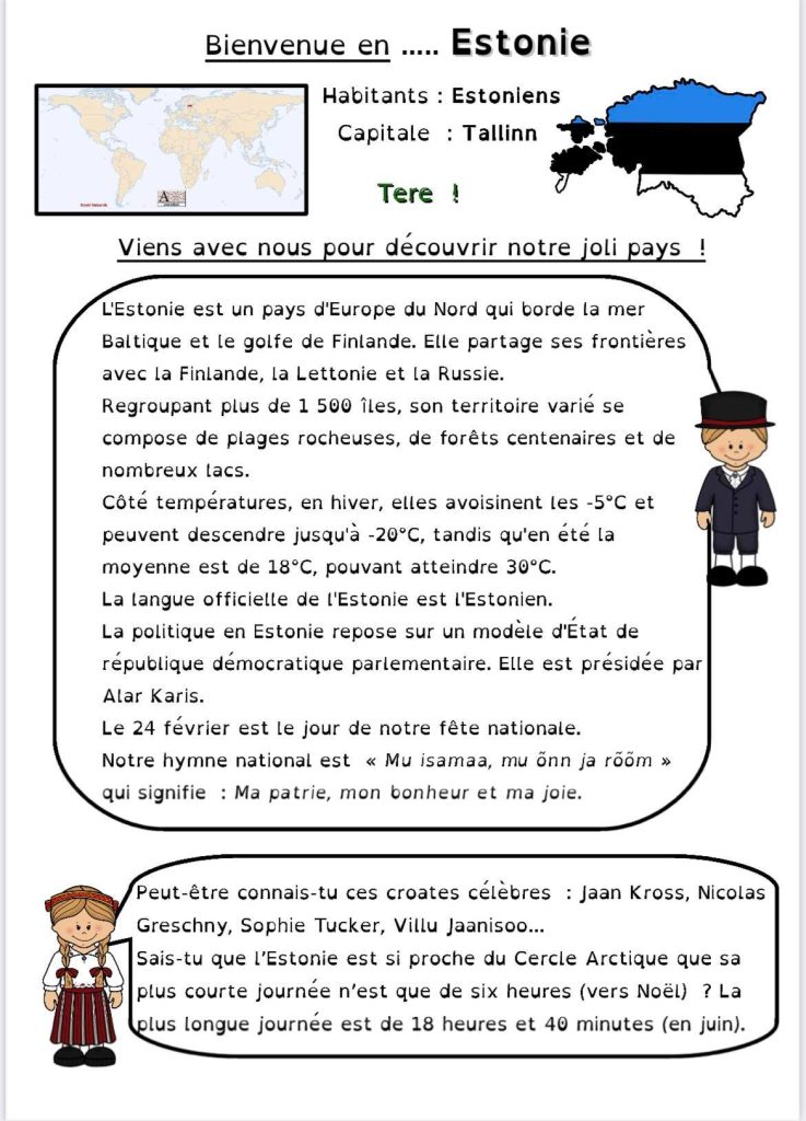 Pour le projet Tour d’Europe de ma classe, nous continuons par l’Estonie.