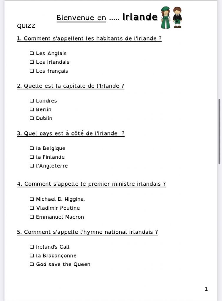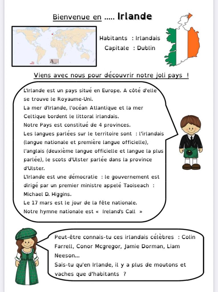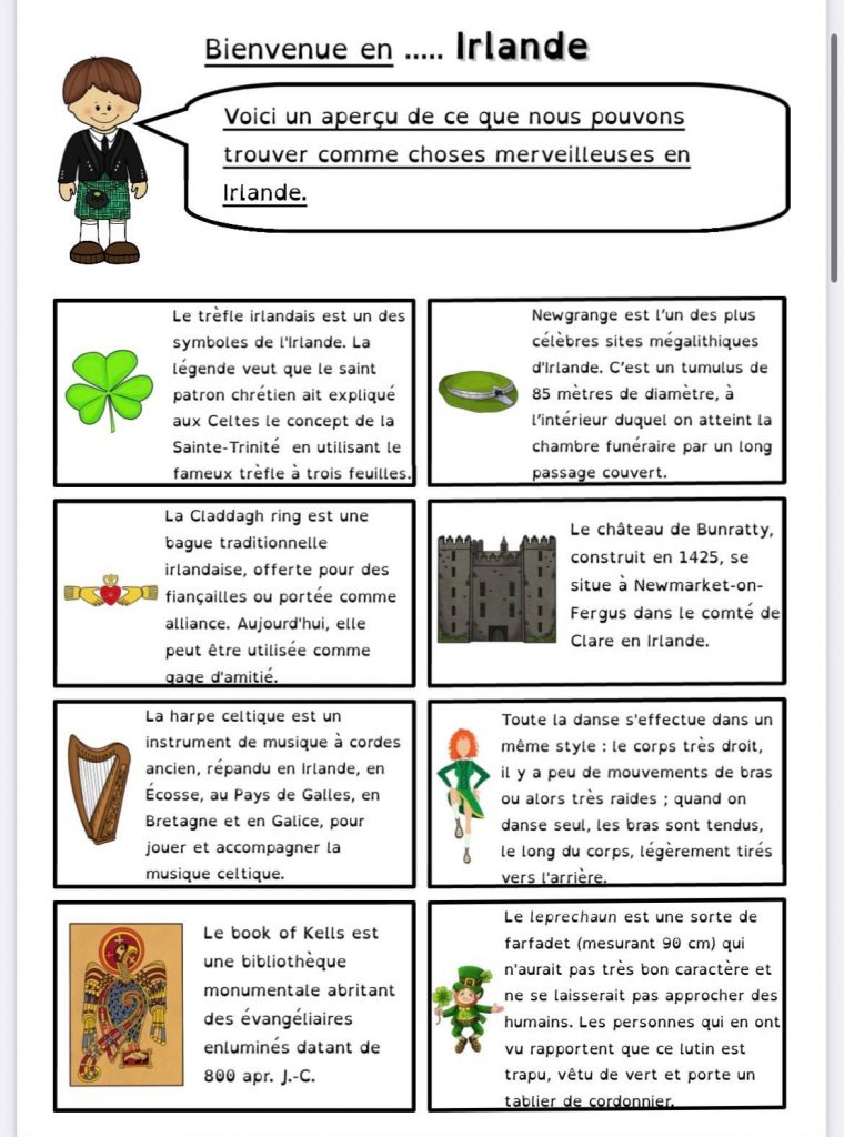 Pour le projet Tour d’Europe de ma classe, nous continuons par l’Irlande.