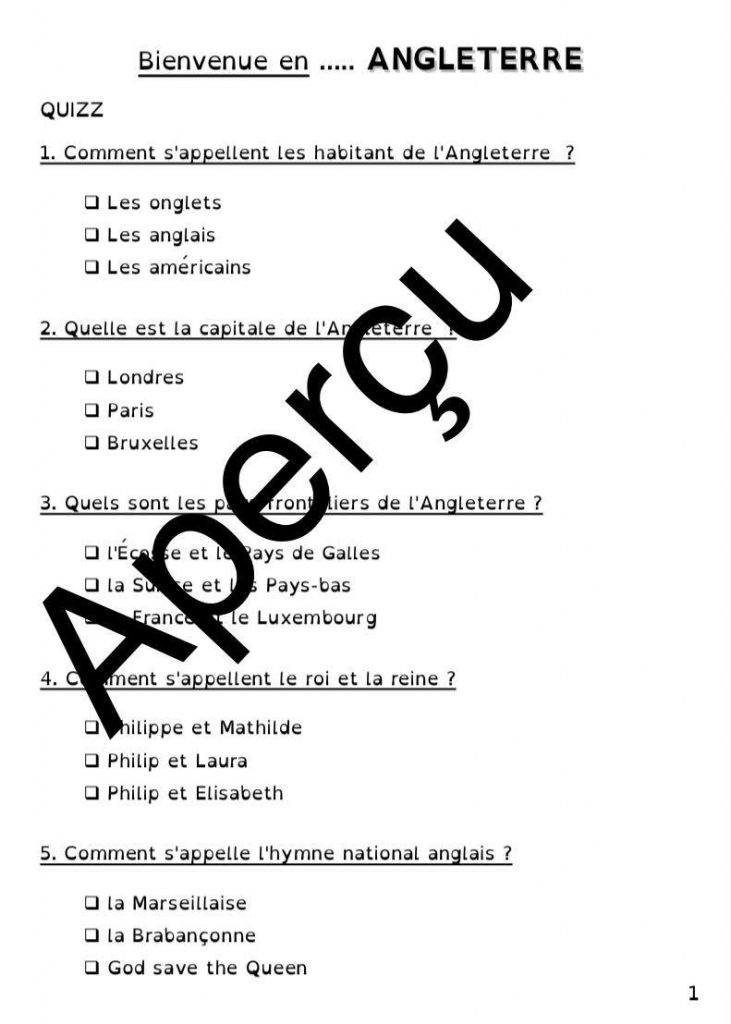 Dans ce dossier de 7 pages, vous trouverez 5 pages destinées aux enfants (2 pages d’informations, une page de compréhension à la lecture, 2 pages de quizz pour vérifier la compréhension des textes.) et 2 correctifs à votre intention.