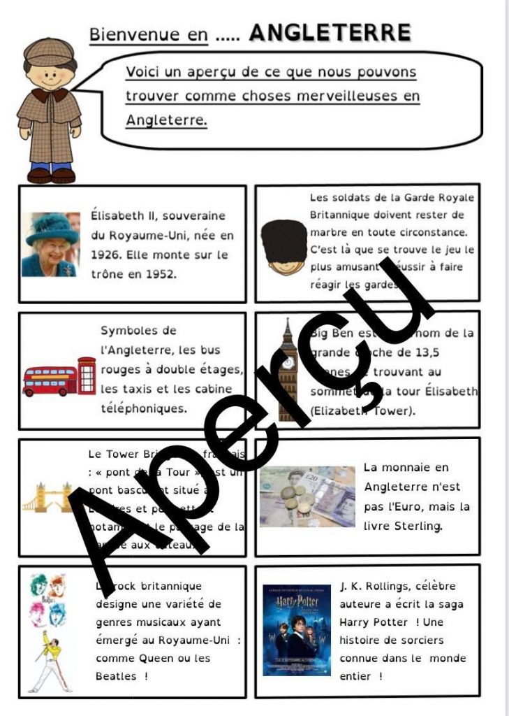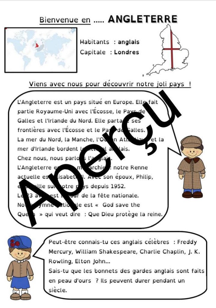 Pour le projet Tour du Monde de ma classe, nous continuons par l’Angleterre.
