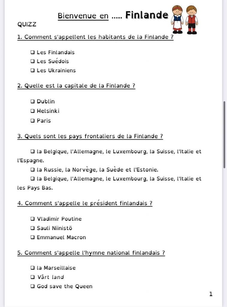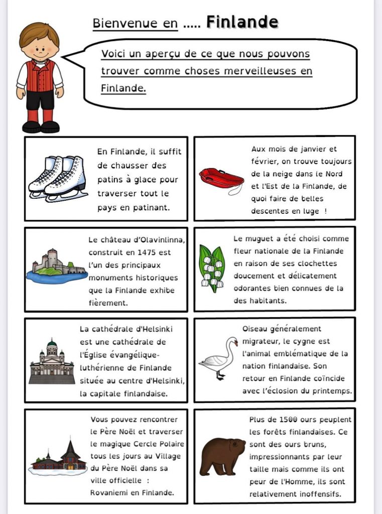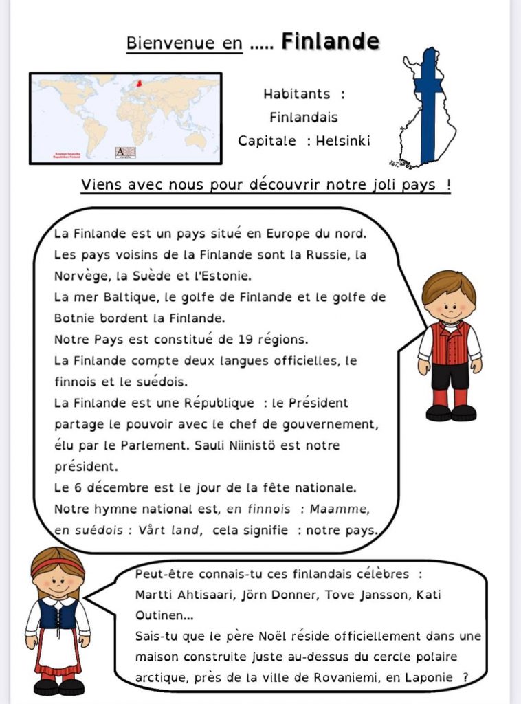 Pour le projet Tour d’Europe de ma classe, nous continuons par la Finlande.