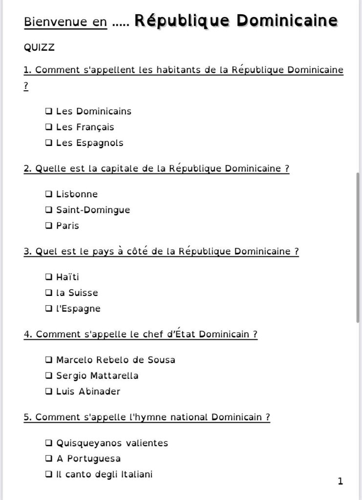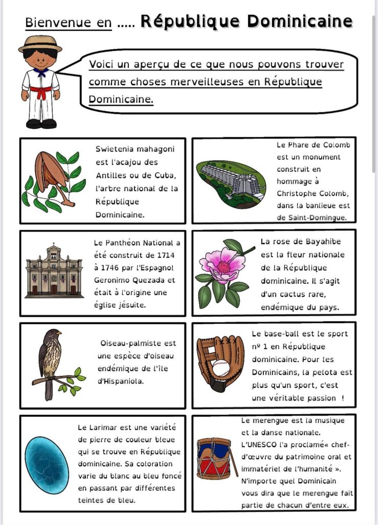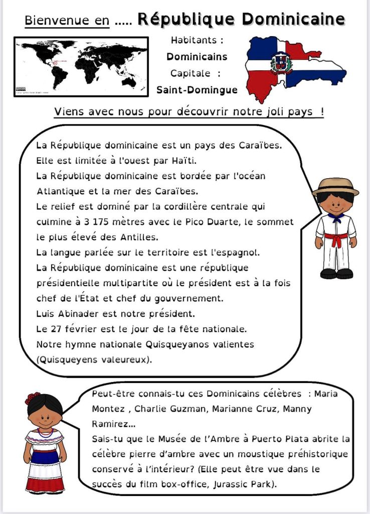 Pour le projet Tour du Monde de ma classe, certains enfants ont voulu qu’on parle du Pays où ils sont nés. Voici qui est chose faite avec la République Dominicaine.