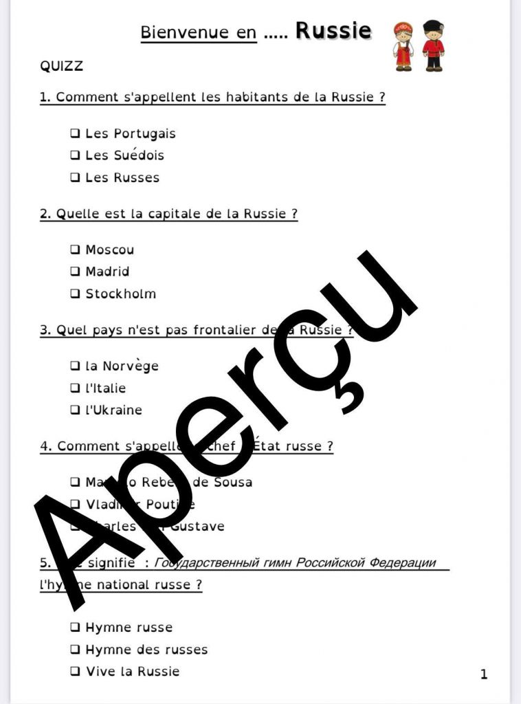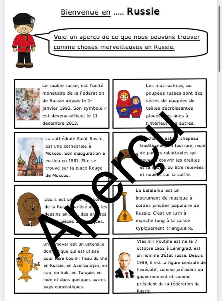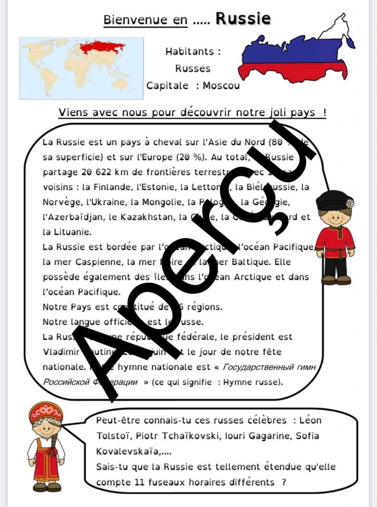 Pour le projet Tour du monde de ma classe, nous continuons par la Russie. Les actualités m’ont influencé dans cette visite plus rapide que le planning fixé en début d’année…