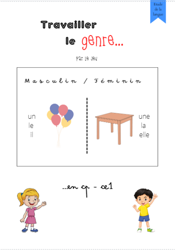 Cette ressource pour le cycle 2 (CP – CE1), permet d’appréhender le genre (féminin/masculin) avec les élèves.