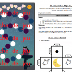 - La règle du jeu et le matériel : 2 versions de jeux sont possibles, une collaborative et une non. Les deux règles sont expliquées. Le matériel comprend : un dé à fabriquer, des étiquettes à imprimer et à coller sur vos propres dés (pour plus de solidité), les étiquettes pions personnages. (Je les imprime et utilise un bouchon ou un trombone pour m’en servir comme pion).