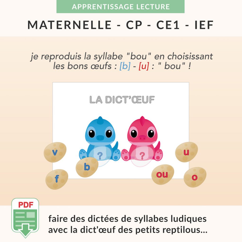 Vous pourrez également télécharger le compteur des petits reptilous à imprimer pour former des syllabes comme dans les vidéos et l’activité Dict’œuf pour faire de joyeuses dictées de syllabes en manipulant les oeufs de dino…